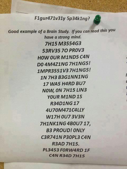 But when the mind shifts to a focus on whole words, the pattern becomes obvious. The numerals simply stand in for similar but familiar letters.